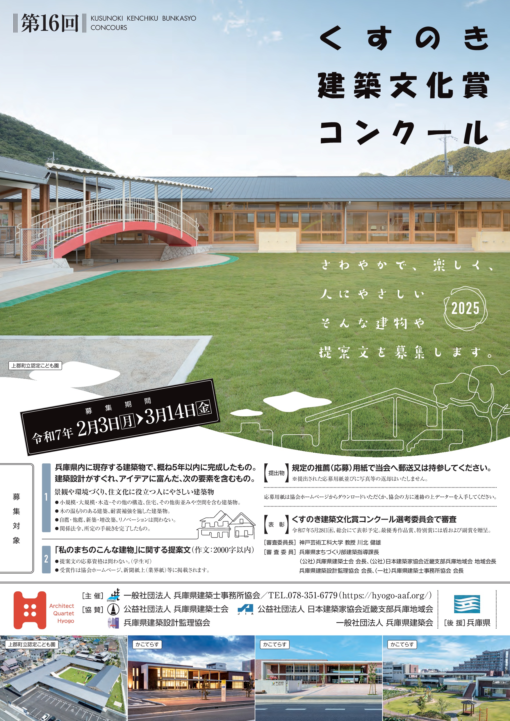 第16回くすのき建築文化賞コンクール 作品・提案文募集